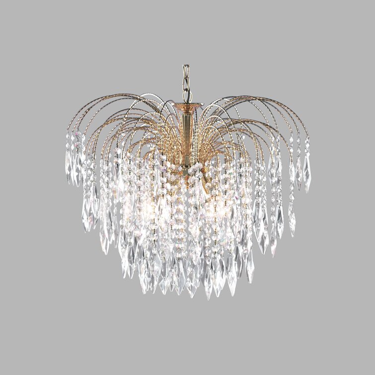 This collection is a stunning blend of vintage elegance and bold silhouettes. This 13 light chandelier features sleek curved chrome finish arms around a decorative central frame, with overlapping tiers of shimmering crystal buttons and drops that create a picturesque cascading light effect and form a dramatic effect when illuminated